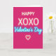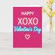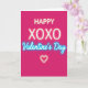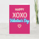 This Valentine's Day card features a bright fuchsia background that feels like a glowing night sign. In the center, the words “HAPPY” and “XOXO” shine in white neon-style letters with a simple, all-caps look. Just below them, “Valentine’s Day” appears in a flowing cursive-style line, lit in an electric blue glow. A thin white heart outline sits near the message and helps frame the design with a sweet, romantic touch ❤️. The contrast of white and blue light against the pink background makes the whole front look like it’s softly shining. It feels meaningful because it keeps the message direct and affectionate, like saying “I’m thinking of you” without needing a long note 🥰.