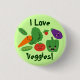 Support healthy eating habits with this cute, anime-style button. Featuring a variety of cute, vector drawn vegetable characters, there is a carrot, tomato, pepper, eggplant, radish, and peas.