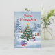 A wine menu with a fireplace in the snow-covered forest. Around the tree there are cute animals, surrounded by gifts and light gloss. The loving, fairytale design is perfect for children and adults alike.
