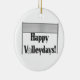 Lightweight, smooth, pure white ornament with nice sheen. Perfect size to be seen from across the room ... and to attract closer inspection! Price was great for ordering enough for the whole family! Clear, bold black design just as requested. Matches the order exactly. Just so nice!