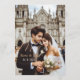 Design: A romantic blend of soft floral patterns and modern calligraphy that says "Happy Wedding" in bold, shimmering gold foil.