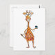 Happy Whimsical Giraffe Drinking Coffee Postcard