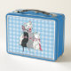 Happy White Mother Cat Three Kittens Plaid Metal Lunch Box