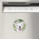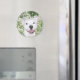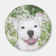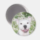 White pitbull terrier face with a big happy smile and wildflowers in the background dog lovers fridge magnet