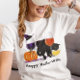 Happy Wine Witch Halloween Black Cat Broom T-Shirt