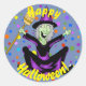 I’ll get you my pretty! A happy witch makes up these fun Halloween stickers. Customizable so you can add your own text and change the background color. Show off your Halloween spirit with this fun design!