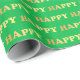 Beautiful happy word pattern on green background gift wrapping paper.