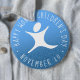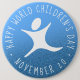 Celebrate World Children's Day with this commemorative button, which features a stylized silhouette of a child at play encircled by the words "Happy World Children's Day" and "November 20" in a handwriting-type font on a baby blue glittery background.