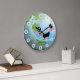 This adorable clock features an anthropomorphic vector drawing of the planet earth.