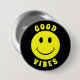 Good Vibes - Cool yellow happy smiling face. Drive the message down with a bold yellow on black design. Good vibes is a slang phrase for the positive feelings given off by a person, place, or situation. It evoked positive, safe, happy sensations. Sending good thoughts / positive energy, and it can also mean 'Right On!' and 'Go for it!'. An expression for many occasions.