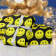Cute yellow happy faces. Surround yourself with an uplifting cheerful design that promotes cheerfulness, positivity, happiness, joy, goodness, with these smiling faces. A friendly, welcoming graphic design in bright yellow, black, and white.