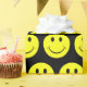 Happy Yellow Faces Pattern Black Wrapping Paper