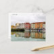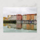 Postcard of colorful buildings and their reflections with boats along a canal in Livorno, Italy, . Digital photography by Sue Melvin