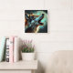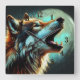 Hard Pastel Drawing Wolf Howling Moon Square Wall Clock