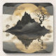 This painting depicts a moonlit forest, with a lone tree standing tall. The moon and mountain is reflected in the water below, creating a beautiful and serene scene. The painting is a reminder of the beauty and mystery of nature.