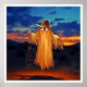 Experience the lonesome trail of a phantom cowboy, a captivating and whimsical blend of western and supernatural themes. This truly engaging piece of art, crafted with AI and then enhanced by a skilled artist, is perfect for those who love unique and emotional designs. The image of a spectral figure on a desolate prairie under a stunning sunset evokes a powerful sense of mystery and adventure. Embrace the joy of shopping and order this enchanting, one-of-a-kind artwork today to bring a touch of the Wild West to your style.