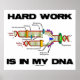 Showcase your wry genetics sense of humor with this poster featuring DNA replication along with the saying "Hard Work Is In My DNA".