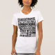 My overall review is that the T-shirt is nice, it fits true to size however the font is significantly smaller than advertised and you can't read it. The printing is unreadable and there is a strain to read it. It does not look like the advertised product. Maybe the shirt color is darker or a larger more visible font should have been used. Photos with and without flash and font is barely legible.