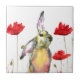 Hare watercolor painting tile. Floral, poppies, Hare art. Animal painting. Woodland animals art. Cute rabbit.