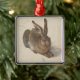 This design features a watercolor painting by Albrecht Dürer (1471–1528), who was an artist, printmaker and theorist of the German Renaissance. It is a portrait of a hare resting on its hind legs, as though it is about to leap up aggressively. Hares and jackrabbits are leporids belonging to the genus Lepus; hares are classified in the same family as rabbits. The animals have long ears and are naturally fast runners (they can run up to 50 MPH over short distances). The original painting was completed in 1502.