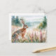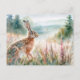 This soft watercolor artwork showcases a serene hare sitting amidst a wildflower-filled meadow. With delicate brush strokes and a tranquil background of rolling hills and evergreen trees, the scene evokes a quiet countryside moment perfect for rustic or cottagecore aesthetics.