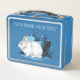 This is a standard metal lunchbox that appears to work just fine. We designed this box ourselves with an uploaded photo and custom text on the front and back. It looks absolutely beautiful except the front of the lunchbox is not centered like it shows in the photo. The print borders don't align with the inset flat part of the box where the preview photo online showed it perfectly centered in there. The back looks nice and centered though.