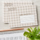 The outside features a beige gingham pattern with personalizable text area for the return address as well as a mailing header. On the inside there is a cute watercolor pattern of hare bunnies facing each other with a brown heart silhouette in between. Perfect for a rustic country wedding, for example.