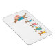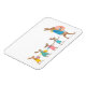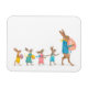 Make someone smile this Easter with this cute, old fashioned fridge magnet featuring a family of hares on an Easter egg hunt, dressed in colorful spring outfits. The design is inspired by the work of Victorian illustrator Kate Greenaway. The text inside reads 'Happy Easter'.