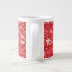 Coffee mug featuring cute animal pattern in red shades, white hares jumping on snow field © Clipso-Callipso / Julia Khoroshikh www.juliakhoroshikh.art #whitehares #whiterabbits #animalprint #winterholidays #whiterabbits #holidaygifts #coffeemug #coffeetime #giftideas #giftforwoman #porcelain #oversizemug