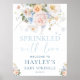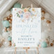 This baby shower welcome sign features a dusty blue spring floral design. The script heading is an image that cannot be edited. All of the other text is fully editable. For more advanced customization of this design, simply select the "Customize It" button above.