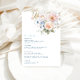 This menu features a blue watercolour floral design. The script heading is an image that cannot be edited. All of the other text is fully editable. For more advanced customization of this design, simply select the "Customize It" button above.