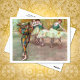 A fine art postcard with the pastel, Harlequin Dance (C. 1890) by Edgar Degas (1834-1917). Three ballerinas in green and white tutus dancing with a jester.