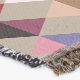 A quality printed throw has its advantages. This is a much finer weave throw than its loopier cousins, and though lighter, it is worth the investment for custom room accessorizing. The back is much prettier than the typical brown, and the fringe on the long sides very vivid, the selvage nicely done. Before photographing, I washed the throw in cold water, delicate, with a thicker woven throw the same size. On tumble dry low, this throw was dry in half the time as the other. This is a very practical quality if you use throws for furniture covers or to wrap up in frequently. The sleekness of the fabric makes it a great layer for accenting or protecting without the feeling of sitting on too much stuff. Perfect for napping or when you feel a light chill coming on. The color printing is beautiful and on this fabric, matched the design and color of my Photoshop image. This is an advantage for blending room fabrics and colors. The fringe on the short sides prints the colors from the design image and therefore varies from the side fringe. I streaked a white fractal line through the plaid pattern to give the illusion of weaving. This printed as crisp as an illusory thread, and put some white in the short side fringe, showing another advantage of print vs loomed- for artistic purposes, line lines, detail, and color integrity can be planned and preserved. My loomed throws have color limitations and more of a needlepoint texture. Print throws reproduce an exact image. The throw felt a little stiff straight out of the package, but this went away in the first delicate wash. Of course I searched the wash water for ink or bleeding and there was none.