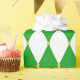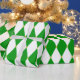 Green and white diamond harlequin pattern with round gold studs. Mardi Gras themed.