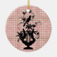 Distressed pink Harlequin diamond pattern background with black harp & bird silhouette overlay