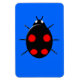 This awesome magnet features a black harlequin ladybird with four irregular shaped red spots on its back, six legs and two white spots that look like eyes on the front of its head. Originally an Asian species it is now living and breeding in Europe and America. It has been put on a blue background but also looks great against other colour backgrounds. You can change the background colour and other aspects of the design by clicking on the “customise it” button.