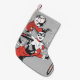 Perfect! Exactly what I ordered! I uploaded a picture of my blue chow, and the screen print was incredible. the back side of the stocking was the red and black checkered print. my puppy's name was also printed on the cuff of the stocking. PERFECT! Highly recommend this product! My puppy's name was screen printed onto the cuff of the stocking, the font was perfect!