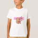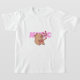This t-shirt features a playful design of a brown bear playing a pink guitar, with the word “MUSIC” in bold, pink letters above it. The bear has a content expression and is surrounded by small red hearts, creating a cute and musical vibe. This design is perfect for music lovers and those who enjoy adorable animal graphics.