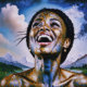 "Harmony in Gold and Sky". This image blends a modern Afro muse with starry, golden elements, celebrating the balance of human strength and universal harmony. Metallic accents and cosmic connections make this a visually stunning piece to inspire positivity and a sense of the infinite. A celebration of Black History Month.