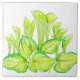 This ceramic tile's design is based on a painting titled 'Harmony in Green' by me. It is set in a Hosta garden, on the brink of Summer when the leaves are in different stages of evolution, from tightly curled infant leaves to fully unfurled mature leaves. It has been colored in many shades of green to celebrate the confluence of Spring and Summer.