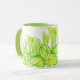 This combo mug's design is based on a painting titled 'Harmony in Green' by me. It is set in a Hosta garden, on the brink of Summer when the leaves are in different stages of evolution, from tightly curled infant leaves to fully unfurled mature leaves. It has been colored in many shades of green to celebrate the confluence of Spring and Summer.