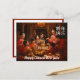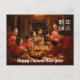 Lovely postcard with customizable text and vibrant painting captures a heartwarming scene inside a traditional Chinese home during the festive celebration of Chinese New Year. The room is adorned with rich hues of red, gold, and yellow, symbolizing luck, prosperity, and happiness.