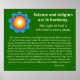 Science and religion are in harmony. The Light of God is reflected in every atom (with 9-point lotus flower). "That which hath been in existence had existed before, but not in the form thou seest today. The world of existence came into being through the heat generated from the interaction between the active force and that which is its recipient. These two are the same, yet they are different. Thus doth the Great Announcement inform thee about this glorious structure... Verily, the Word of God is the Cause which hath preceded the contingent world -- a world which is adorned with the splendours of the Ancient of Days, yet is being renewed and regenerated at all times... Say: Nature in its essence is the embodiment of My Name, the Maker, the Creator." -- Bahá'u'lláh