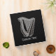 Black and white harp icon with Celtic knot decoration. Custom Text.
