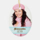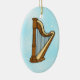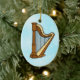 Harp players personalized photo ornament. Harp image on light blue, starry background for a musician to hang on the Christmas tree. Easily add a picture to the back along with a name and year date. This oval shaped ornament could be a gift for the harp player, or music instructor, for Christmas or as a thank you at any time.