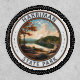 Harriman State Park illustration in a badge style circle. The park is also known for its 31 lakes, multiple streams, public camping area, and great vistas.