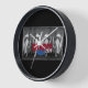 I received this as a birthday gift from my husband to replace a clock that had broken. It was perfect, pictures of my sweet family to see at every hour of the day. The size of the pictures looks nice for the size of the clock and I love looking at it! The only downside is there is no cover for the battery on the back, which makes me nervous having little kids running around the house, but an easy fix with some tape. The printing turned out clear, considering they were all cell phone pictures. Some of them look slightly grainy upon getting close up. But so nice overall!