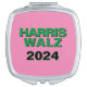 Our HARRIS WALZ Square Compact Mirror is a cool gift idea for friends voting HARRIS WALZ 2024! Design featured text in green and black joined with a pink background. The perfect commemorative gift for this historic campaign. Volume discounts available.
