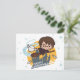 Check out this adorable cartoon character art for Harry Potter and his owl Hedwig as they fly past Hogwarts castle!