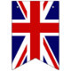 NewParkLane - Royal Wedding Bunting Flags, to celebrate the Royal Wedding between Prince Harry and Meghan Markle on May 19th, 2018, with the Royal Crown colored with a British Flag - the Union Jack - and ' Harry & Meghan' in elegant script typography. The alternating flags have a union jack print.